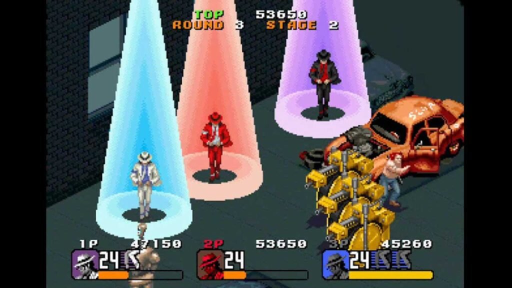 - O Caos Isométrico (Arcade): Aqui o jogo era um beat ‘em up para três jogadores. Era o Michael Jackson “super-herói”, disparando raios e transformando-se em um robô gigante com visão de calor.